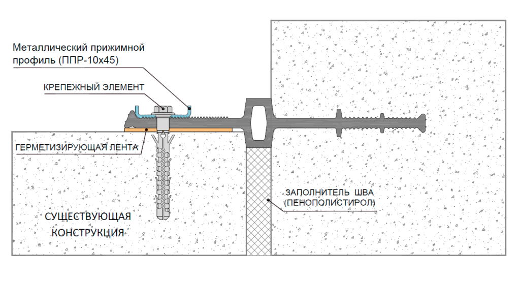 Устанавливается по контуру деформационного шва, когда разноуровневое расположение и разная толщина элементов конструкций плит фундамента, плит покрытий и периметральных стен.